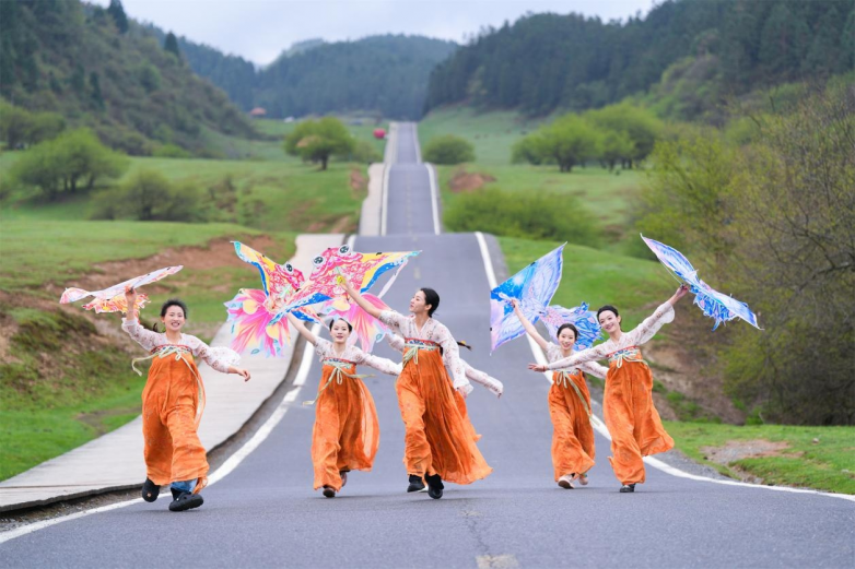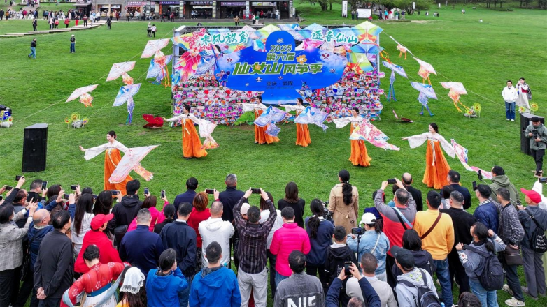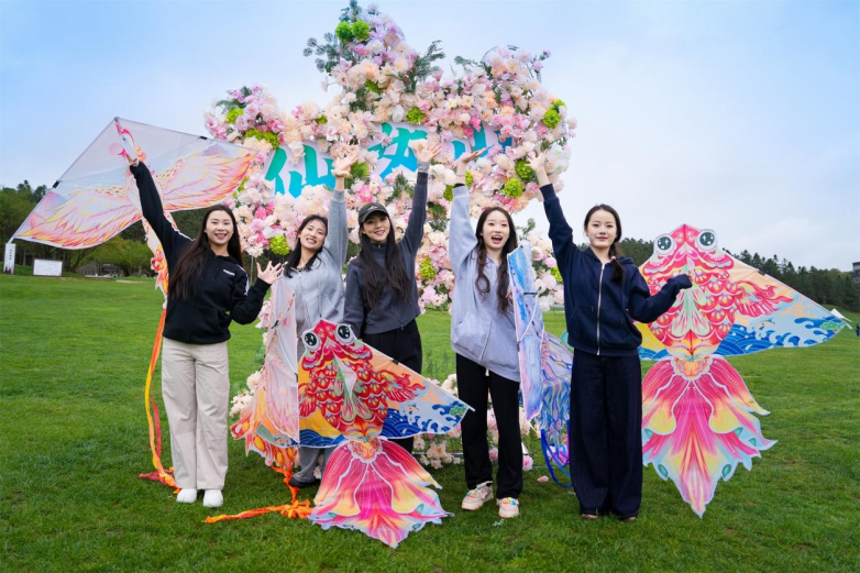 Z世代出片秘籍:大草原上“花簇燕子”打卡点被游客包围——巨型风筝墙、网红标语框,随手一拍就是大片,配文“在仙女山,我把春天放上天啦”,点赞破千预警!