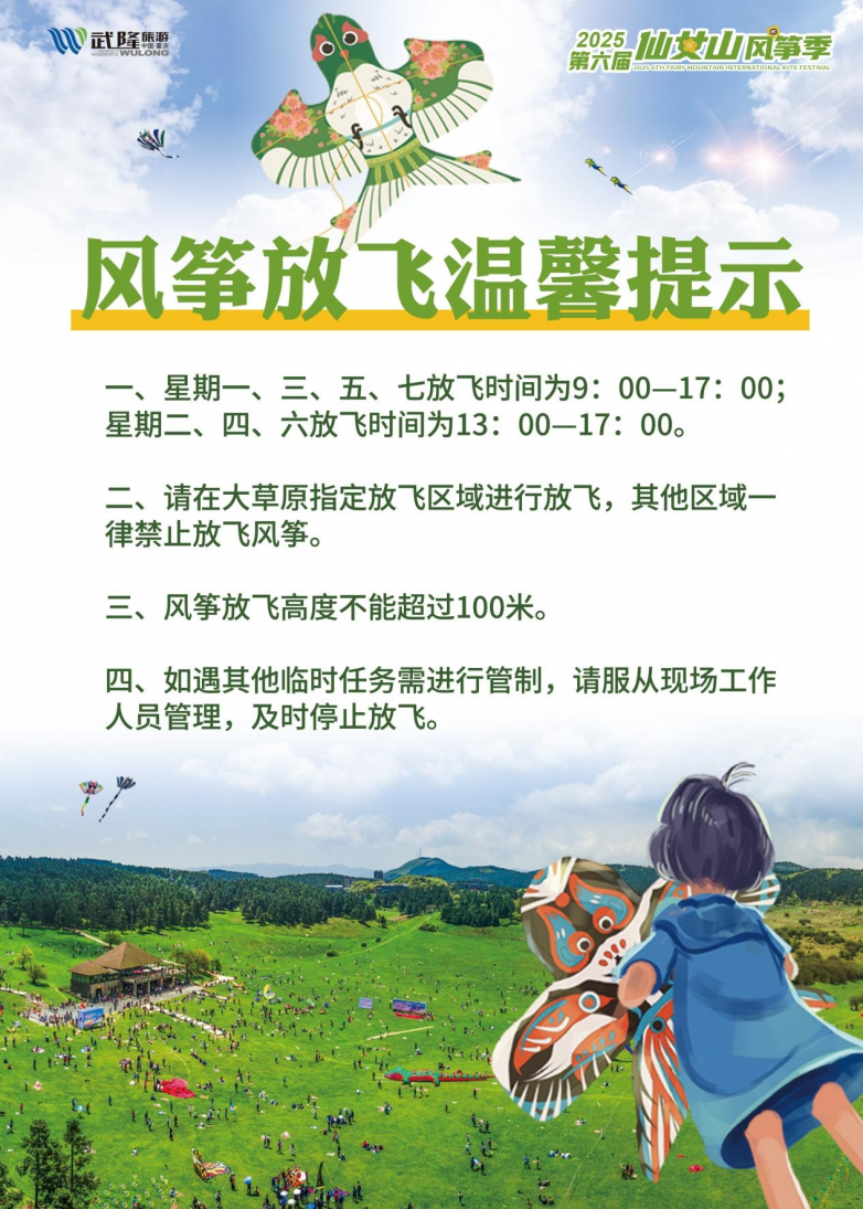 同时,活动主办方也推出了丰富的互动环节,游客朋友们不仅可以用镜头记录下仙女山的春日之美,也可以通过拍照打卡、关注景区新媒体账号、参与“旧物换新鸢”环保行动等方式,免费领取或兑换特色风筝,亲手放飞美好与希望。