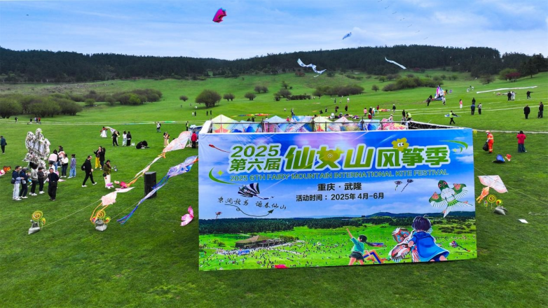 开幕仪式上,“DIY武隆愿景风筝”环节吸引众多嘉宾和游客们的参与,大家拿起画笔,在一只大型风筝上写下自己的期望与祝福。随着重庆市武隆区人民政府副区长何圣春宣布“2025第六届仙女山风筝季开幕”后,形态各异的风筝乘风而起,同时,DIY愿景风筝化身“天空邮局”的信使,载着千万份祝福飞向云端。
