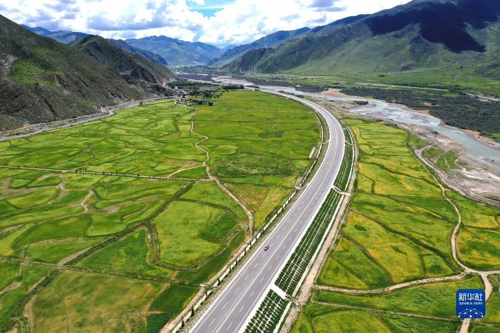 2019年8月16日拍摄的拉林公路一景(无人机照片)。新华社记者 普布扎西 摄