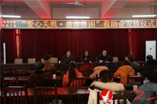 商洛之窗讯 (记者 李小军 王孝竹)2月3日,市慈善协会、市总工会"爱心关照·慈善帮困"活动救助金发放仪式在商州举行。市慈善协会会长王有德、市总工会副主席余伟现场为商洛市机械厂崔彦堂等10名困难职工发放了救助金。