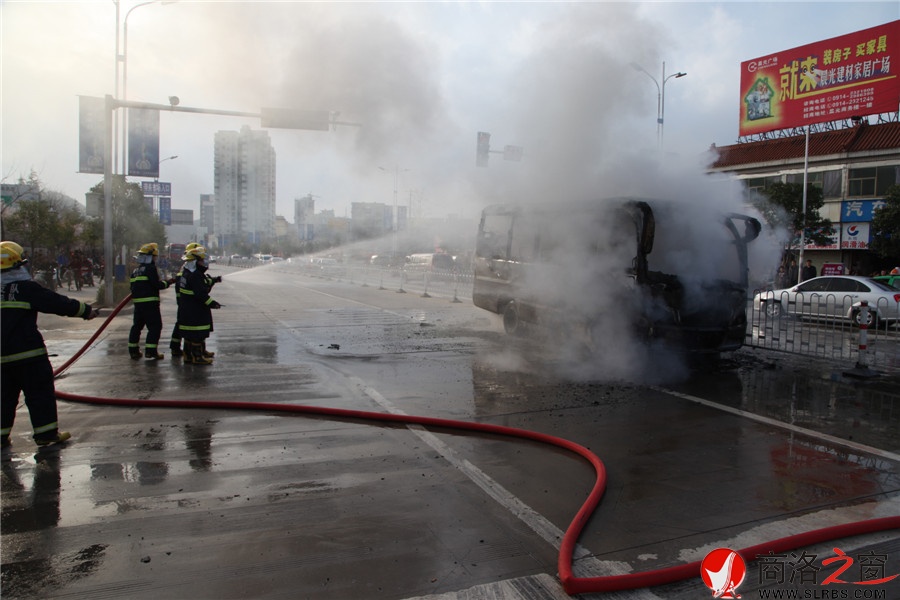 3月20日下午商州至牧护关通村客车突然起火(多图高清)