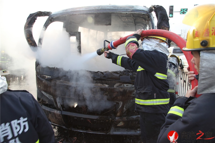 3月20日下午商州至牧护关通村客车突然起火(多图高清)
