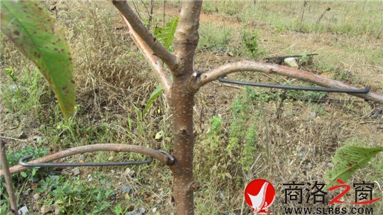 商洛之窗讯(李建设)拉枝是培育樱桃树丰产树形不可缺少的技术手段。九月是果树秋季拉枝的最好时节。此时樱桃树枝条柔软,枝条延长梢基本停止生长,通过拉枝,开张主枝角度,有利于削弱枝条极性生长,缓和枝势,提早樱桃树成花结果。