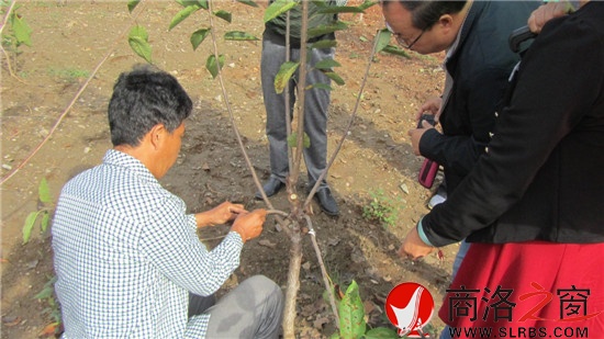 在果园示范宣传培训现场,免费发放果树拉枝器、刻芽刀、技术资料共100多套。技术人员在进行大樱桃拉枝新技术现场操作演示示范的同时,向大家讲解其技术操作要领;然后指导果园管理技术人员和果农应用拉枝器正确操作拉枝。通过现场讲解、示范操作、手把手指导,使大樱桃基地的果园管理技术人员和果农快速学习掌握了樱桃树拉枝新技术,对提高商洛大樱桃基地果园秋季管理水平起到了积极的推进作用。