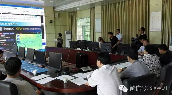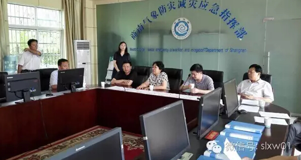 陈俊在商南县气象防灾减灾应急指挥部现场研判雨情汛情监测