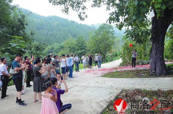 8月20日,商州区江山村270多年的老核桃树开杆收果。这是商洛市电子商务协会为了扩大对商洛优质老树核桃的宣传,今年特别举办的“商洛市首届老树核桃开杆节”,邀请社会各界代表相聚商州区江山村百年老核桃树下,共话商洛老核桃,促进产业发展与营销。(刘少鸿 摄)