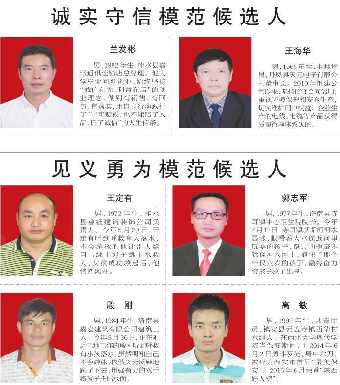 第五届商洛市道德模范提名奖候选人名单