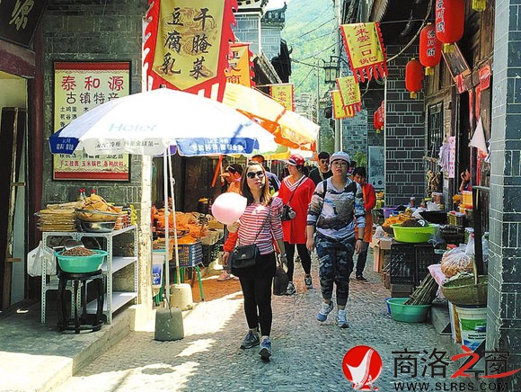 “五一”假日期间,山阳县漫川古镇景区游人如织,各地游客尽情享受着惬意的休闲之旅。(记者 李敏 摄)