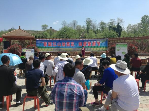 在旅游节上,山阳县秦岭野生中华蜂养殖专业合作社理事长张涛为广大游客、及部分想发展养蜂的贫困户介绍了秦岭中华蜂的培育状况、以及合作社的合作政策;商洛秦岭蜜源蜂业有限公司孙文杰为大家分享了蜂蜜品牌建设方面的知识。两位年轻的创业者一致认为,江山美丽乡村的生态环境好,植被茂盛,花海周期长,特别适合秦岭中华蜂的繁育,都愿意在此建立自己的养蜂基地,以带领更多的农民发展养蜂,为家乡的经济发展、产业脱贫、农民致富做出自己的贡献。