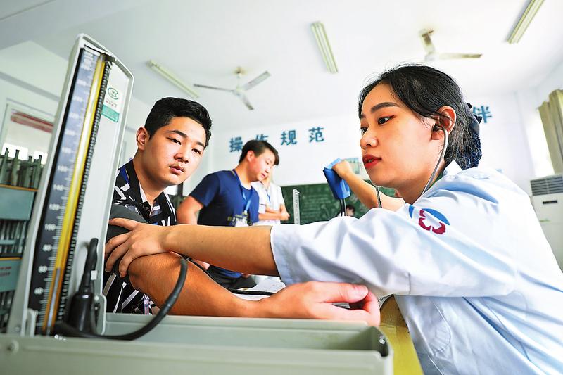 7月31日,应征青年在江苏省淮安市盱眙县征兵体检站接受身体检查。2018年全国征兵工作从8月1日开始,至9月30日结束。(新华社发 周海军 摄)