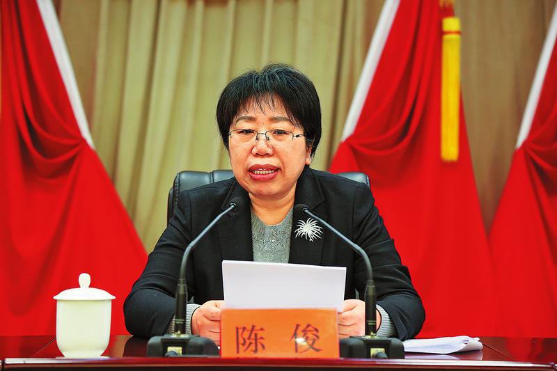 陈俊强调,要认真贯彻新时代党的建设总要求,加强党的政治建设,结合“两学一做”学习教育常态化制度化、“不忘初心、牢记使命”主题教育和“讲政治、敢担当、改作风”专题教育,深入系统学习习近平新时代中国特色社会主义思想,牢固树立“四个意识”、坚定“四个自信”、落实“两个维护”、做到“五个必须”,特别是要把落实习近平总书记重要指示批示作为基本政治规矩,定期开展“回头看”,确保中央决策部署不折不扣落地生根、开花结果;要激励干部担当作为,树立正确用人导向,强化正向激励,改进干部考核评价,深入开展“弘扬爱国奋斗精神、建功立业新时代”活动,为追赶超越提供智力支撑;要织密建强组织体系,全面深化“党旗引领脱贫路”主题实践活动,大力加强各领域党组织特别是农村基层党组织建设,为实现脱贫摘帽提供最有力的组织保障;要持续改进党风政风,坚决破除形式主义、官僚主义,持之以恒落实中央八项规定精神,扎实开展违规收送礼金问题专项整治,切实管出习惯、抓出成效、化风成俗;要严厉惩治腐败问题,发挥案件查办震慑作用,抓好警示教育,做好中省巡视反馈问题整改,不断巩固和拓展风清气正的政治生态,坚定不移把全面从严治党向纵深推进。