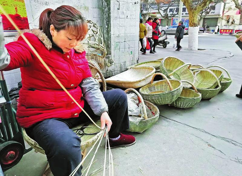 近几年来,在丹凤县城北新街中段,时常可看到一位40岁左右,在一堆竹笼、簸箕、竹筛旁忙着做篾活儿的女人。她没有固定的摊位和招牌,有时坐在行道树下,有时坐在路边墙角,不管春夏秋冬,寒来暑往……