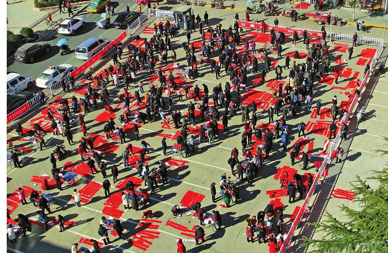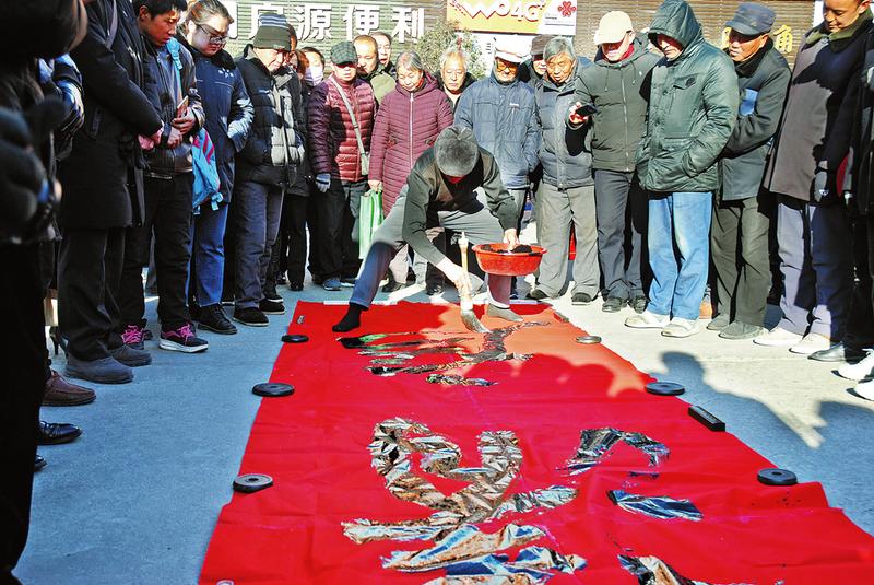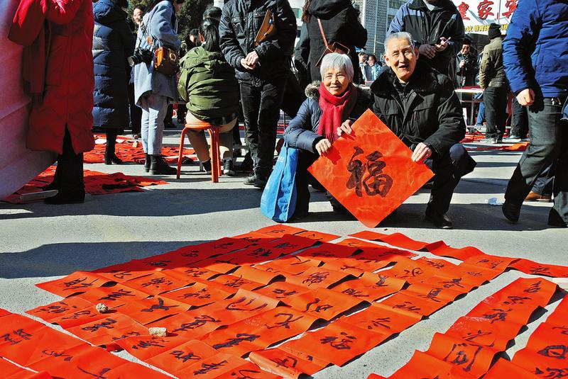 活动现场也是“廉味”浓厚。悬挂的条幅上写着“严肃整治违规收送礼金,营造风清气正政治生态”,中间地面上摆着的一幅写好的大字“清廉”,据介绍,这幅字高5米、宽2米,笔势有力,雄浑苍劲。不时还有“清泉碧水人心美正气廉风日月明”“以德治国兴业财旺艰苦创业国富民康”等对联被群众一一带走。据了解,当天参与活动的有中省书协会员和书法工作者160余名,共写出6000副春联和2000张福字,营造了文明节俭、风清气正的节日氛围。