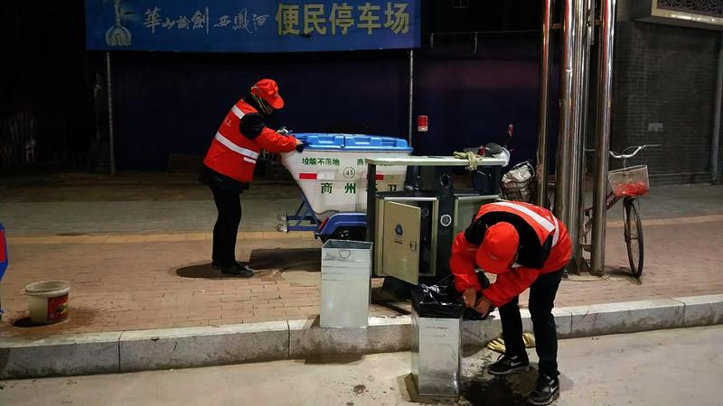 今年50岁的闵永利,是商州区城西环卫所的一名环卫工人,从事环卫工作已经有9个年头了。妻子李朝莉是城南环卫所的环卫工人,每年春节,不管是除夕夜还是大年初一,夫妻俩都要坚守在工作岗位上,清扫各自所负责的街道。今年的除夕夜,夫妻二人都上夜班,要从16点一直工作到22点半,上班之前,他和妻子做了一顿简单的晚餐就当做年夜饭了。“过年期间垃圾量很大,除了商家的各种包装垃圾,还有居民们春节大扫除留下的生活垃圾,一个班就能拉五六车。”闵永利说。