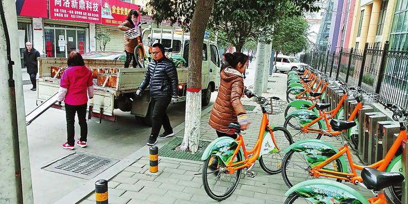 大年初一,张芳妮和同事们像往常一样来到商州区公共自行车丹江一品站点,开始了一天的调运工作。由于该站点附近小区较多,公共自行车的使用率很高,在交接班的半个小时内,站点的车桩上已经停满了公共自行车。“来,我们麻利点,今天用车的人很多,下一个站点的车子刚打电话也满了。”说话间,张芳妮将车桩上的自行车推出来,按顺序整齐摆放在调度车的后车厢内。几分钟之后,车桩上剩下了一半自行车。“我们的工作主要负责调运自行车的数量平衡,将站点上多余的车辆运送到车辆较少的站点,保证市民有车可借,有空可还,最大限度地提高公共自行车的使用率。如果调度不及时的话,就会影响市民正常取车还车。”张芳妮说。