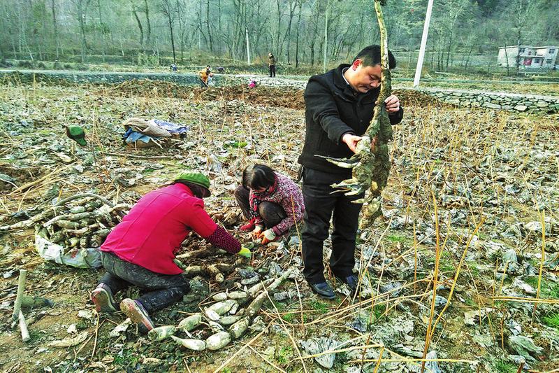 2019年春节前后,山阳县色河铺镇陆家湾村莲菜喜获丰收,每斤莲菜售价比别处高出一倍多,使得种植户和合作社负责人喜不自胜。高坝店镇鱼塘村,2017年合作社牵头在村里集中连片种植紫苑,2018年又种上了艾蒿,获得了种粮几倍的收入。村支书陈书成介绍:“农民以土地为本,他们在自己生活了一辈子的土地上找门路,增加家庭收入,心里安稳踏实。我们村这块地,今年还继续发展紫苑,让贫困户多增收、早脱贫。”