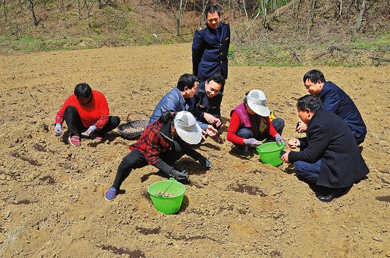 3月26日,商南县农业农村局开展的“三下乡”活动在青山镇举行。县农业农村局筹资两万多元为青山社区群众送去物资。农技干部还到魔芋基地指导魔芋种植与管理。(孙传卿 摄)