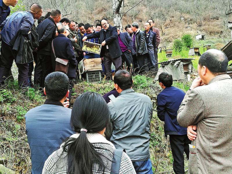 近日,商南县农科教中心邀请西北农林科技大学教授,对县内职业农民开展果树种植、中蜂养殖等方面技术培训,50多名狝猴桃、大樱桃种植户参加学习。(汪波 摄)