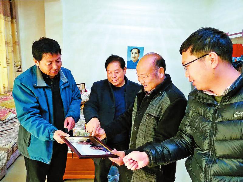 2018年,驻村干部于海洋提议:扶贫日恰逢重阳节,为全村老年人照一些生活照,装上相框,给老人们送去别样的重阳节礼物。在重阳节前,用了将近一个月时间,于海洋和其他驻村队员一起,为40位老年人拍摄了生活照和全家福。有的老两口以前很少在一起拍照,刚坐下略显拘谨,于海洋鼓励他们看看门前悬挂的腊肉,想想以后越来越好的日子,一瞬间幸福感不经意溢出,拍摄现场一片欢笑,照片刚好定格在那一刻。