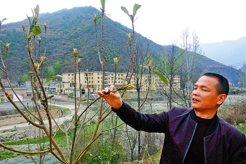 在山坡上的花椒地里,记者遇上了从成都回来的小伙刘新利。他早年去成都打拼,如今已经在那里安家落户。3月初,他听父母说村干部鼓励大家种花椒树,特地从成都赶回来,帮父母在家里的60亩坡地里栽上3000株花椒。想着3年后,花椒树开始挂果,在增加家里收入的同时,减轻了父母种庄稼的辛劳,他心中无比高兴。