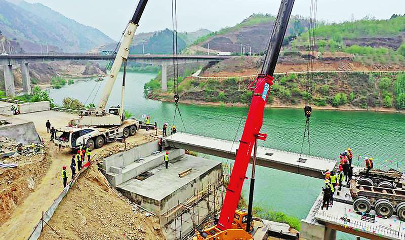 本报讯(陶琳)4月12日,经过近3个月建设,商州区杨峪河镇银龙沟桥顺利完成最后一块箱梁安装,预计5月30日建成通车。