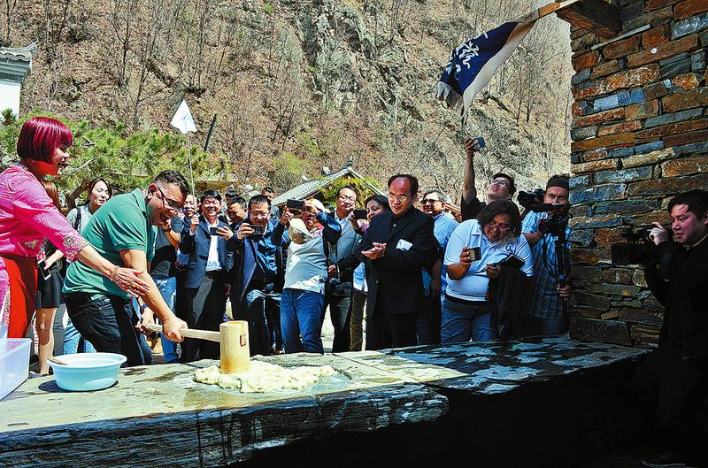 打糍粑、刻木雕、推水磨、编箩筐、点木耳、磨豆腐……4月5日,在柞水县营盘镇朱家湾村,来自萨尔瓦多共和国记者团的20多位外国友人考察采访脱贫攻坚工作,体验商洛农家生活。