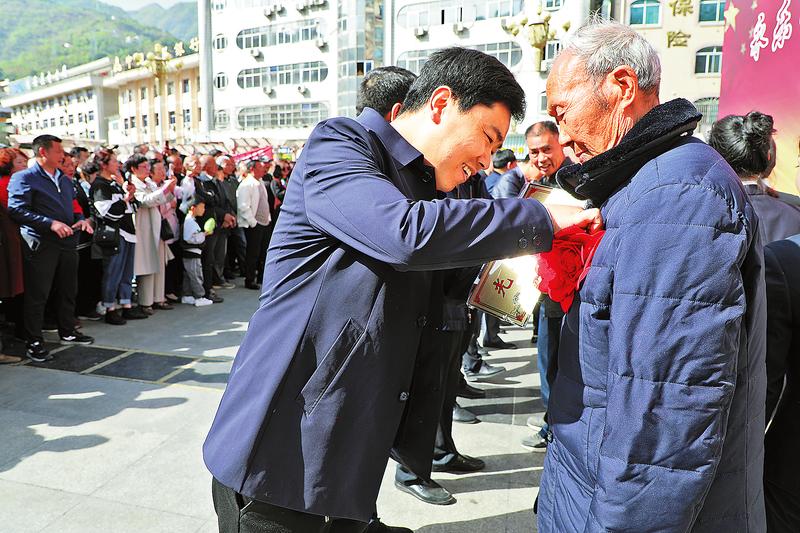 4月16日,镇安县永乐街办举行军烈属和退役军人光荣牌授牌仪式,800多名军烈属和退役军人代表参加了活动。据悉,为确保尽快完成“光荣之家”荣誉牌发放工作,永乐街办各村(社区)已安排专人将光荣牌送到烈属、军属和退役军人家中悬挂,把双拥工作做细做实做到位。(惠晓丽 摄)