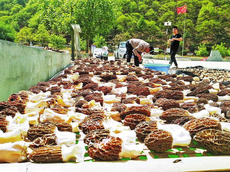 如今,18个羊肚菌大棚依山傍水而建,喷灌系统每天有条不紊地工作着,大棚中的羊肚菌长势良好。4月底,龙潭村的第一茬羊肚菌上市了,市场反响非常好,脱水后的羊肚菌“地头价”就达到每斤600元左右。