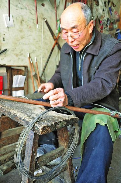 据魏宽琪介绍,他们魏家三代人一直以钉秤为生。1960年前后,他的父亲魏西海办起了私人秤铺,从事钉秤生意。1968年,初中毕业的他就学会了这门手艺,跟着父亲在家里钉秤。2013年,31岁的儿子魏龙子承父志接了他的班,他就过起了含饴弄孙的悠闲日子。然而,令他没有想到的是,去年7月份儿子嫌收入低放弃了这门生意,到浙江湖州打工去了。不得已,他又重操旧业,拾起了自己的老本行。