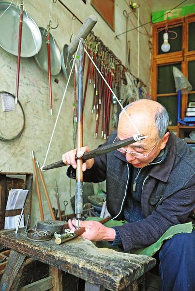 今年3月份,在洛南县城西街柏槐社区临街只有一间门面的秤铺里,三组居民魏宽琪和焦凤琴夫妇正娴熟地演绎着这门即将失传的绝活——钉木杆秤技艺。