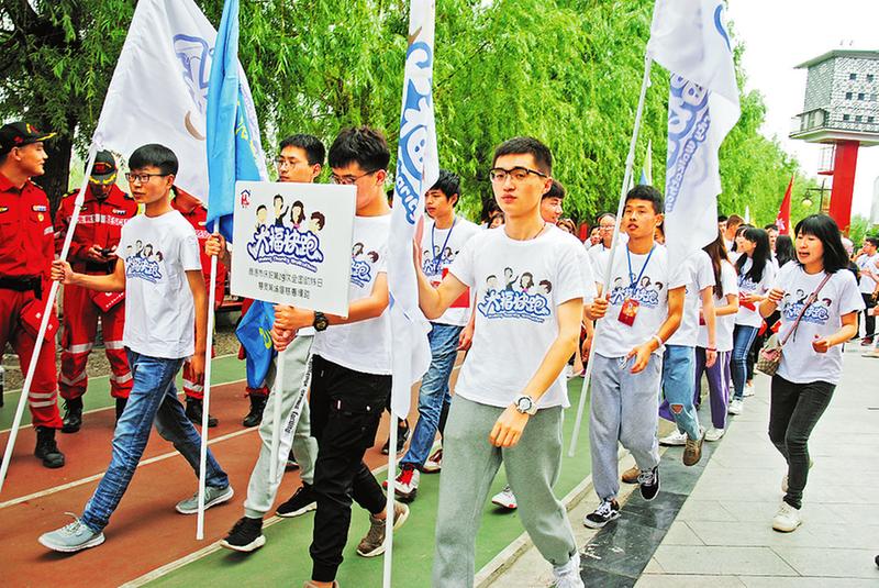 最后,所有前来参加活动的志愿者与残障人士一起进行了“大福快跑”公益行走活动,沿路宣传助残知识,50多支志愿者队伍形成了一道亮丽的风景线。