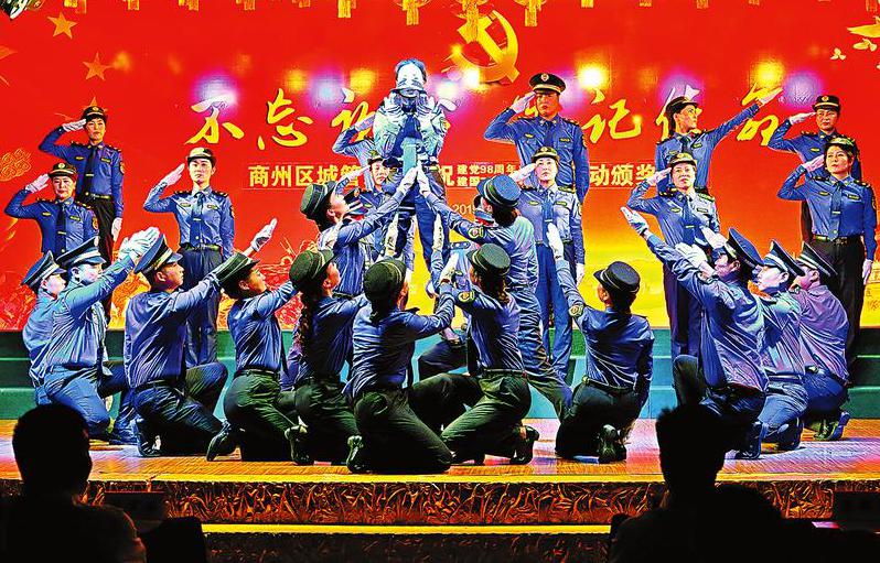 6月29日,商州区城管局举办庆祝建党98周年暨建国70周年系列活动,进一步弘扬党的光荣传统和优良作风,增强广大党员的光荣感、责任感和使命感。(方方摄)
