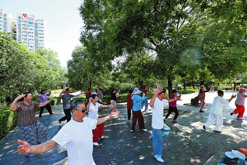 市民在优美的环境中晨练