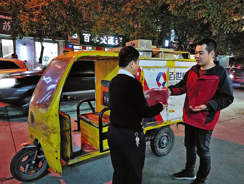当日凌晨五点半,在商州区陈塬街道办百世快递公司的分拣仓库里,快递员王博和同事们一起迅速分拣刚运抵的包裹。王博说:“快递量比平时多出很多,大家都在加班加点,只想着能快一点把快递送到客户手里。”早上10点出发前,王博仔细检查了三轮车上的货物,他说:“平时一天送140多件快递,‘双十一’期间比平时多了一倍。今天货多,一会还要再回来拉一车。”“比平时多了这么多,当天送货有压力吗?”记者随口一问。他笑着说:“说实话,已经习惯了。今年是我第二年参与‘双十一’派送了,每年‘双十一’前夕公司都会安排专门的培训会,针对可能出现的问题作出应对,有一套成熟的应对机制。而且每个快递员在平时派送工作中已经摸索出一套适合自己的方法,能够确保送达率98%以上。”作为一名80后快递员,王博对工作永远是活力满满,“平时早上7点多去仓库分拣,10点多开始配送。‘双十一’期间快件多,每天早上五点半左右就要赶到,把分拣的时间提前就能给自己派送留够时间。”