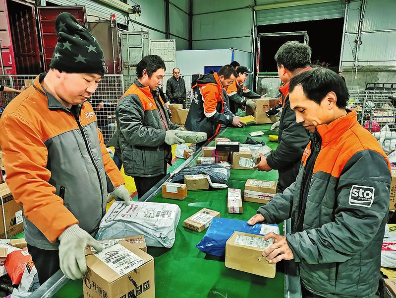“双十一”网购高峰刚过,快递业的忙碌随即展开。11月13日7点,申通快递公司东龙山分拣中心门口,快递员们正在将大货车内的包裹一一卸下、然后在分拣流水线上根据区域逐个分拣着将要运送的包裹。该公司客服经理杜衡介绍:“从今天起,‘双十一’的快递量进入高峰期。平时每天是一车货,今天起到后面一周,每天至少两车,今天到货1.6万件,比去年这个时候多了3000多件。为了早点把快递送到客户手里,我们公司全员上阵,安排了4个经验丰富的机动人员随时配合,收货、拣货、送货、客服等各岗位保证人手足够,以确保当日的快递当日送达。”该公司快递员告诉记者,上周他们还专门召开了应对“双十一”的培训会,针对安全事项、收发派送等具体工作进行安排,特殊时期依然要保质保量完成派送工作。