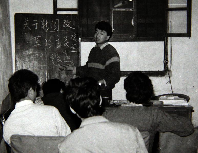 1990年10月,中国社会科学院新闻与传播研究所张西明,在报社锻炼期间,为报社采编人员讲课。