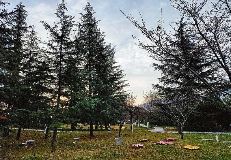 初升的阳光下,丹水清幽,丹江公园里塔松肃穆,红绿相间的跑道和路边常青树木互相映衬,使得冬日小城的颜色也丰富起来。一路向东行去,跟随着晨跑的人们,穿过“时光之门”,欣赏丹鹤楼前美景,透过柔美的柳枝,看着不远处街道上的行车及人流,听到隐隐传来的喧嚣声,顿时觉得整个城市充满了生机与活力。