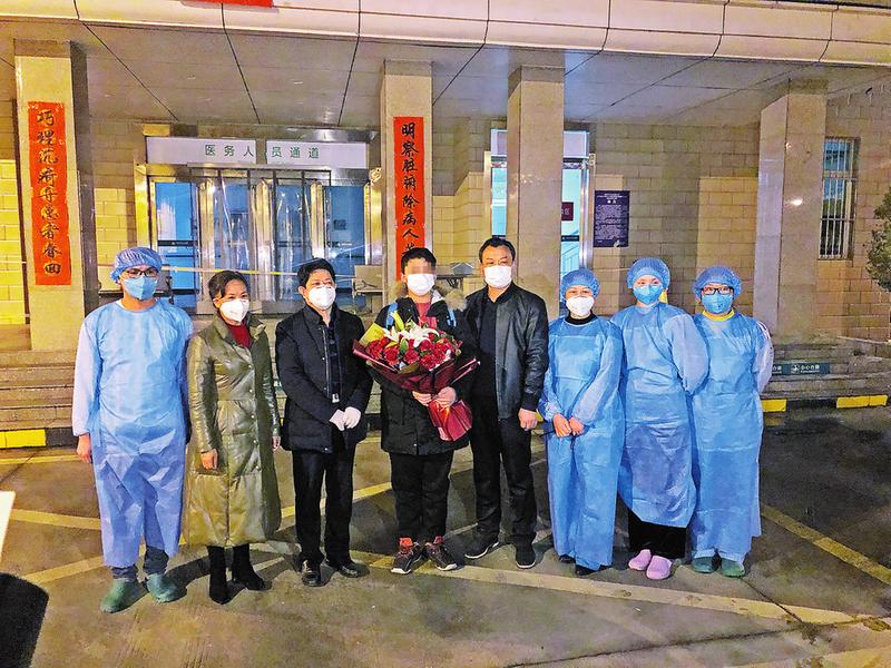 当晚7时58分,医护人员把冯某某送出感染科病区。在感染科楼前,冯某某向医护人员表达了由衷感谢。他说:“在住院期间,医护人员对我进行了细心救治和护理,没有他们,我就不可能站在这里。病毒不可怕,只要我们团结一心,就一定能战胜它。”