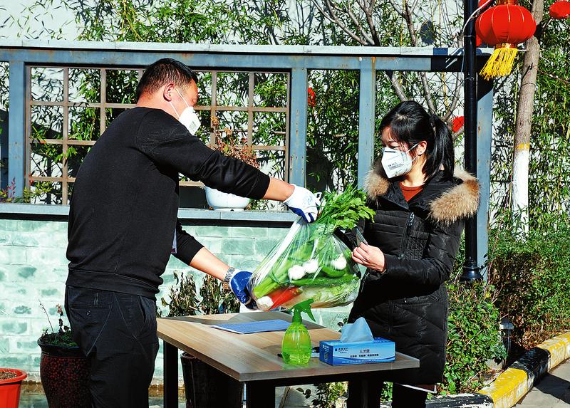 二月十二日,市区融城国际小区的二百二十四户业主每户领到了物业赠送的一份新鲜蔬菜,每份包含白菜、芹菜、红萝卜、辣椒、黄瓜、小葱、大蒜、生姜八个品种,让宅在家里的业主感受到了实实在在的服务。(记者 王孝竹 摄)