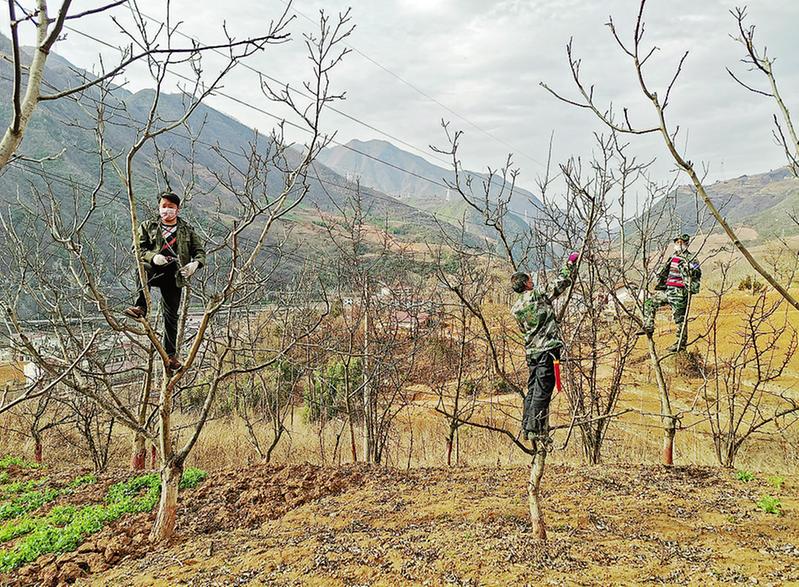 近日,镇安县永乐街道办利用春季有利时机,组织了林业科管技术服务队深入八亩坪、孙家砭、杏树坡等核桃和板栗主产村,进行技术培训和科管,为林果产业丰产丰收打下坚实基础。目前,核桃科管9000多亩、板栗科管1.1万多亩。(惠晓丽 摄)