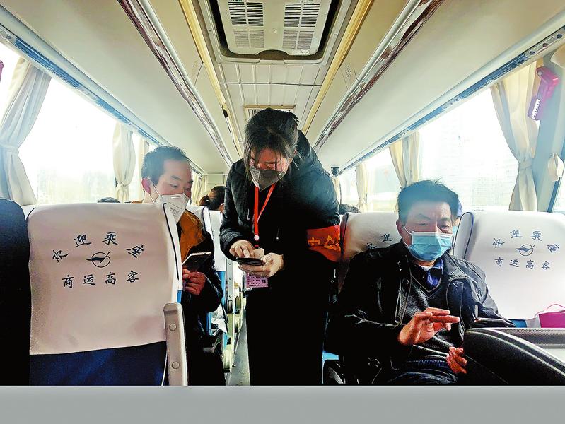 市汽车客运站内,旅客扫码出行。