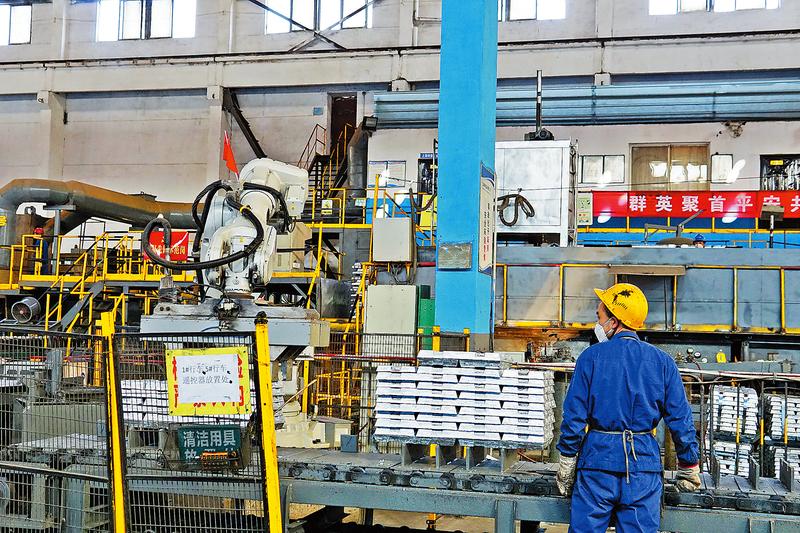 陕西锌业有限公司车间流水线上,锌块源源不断地生产着。