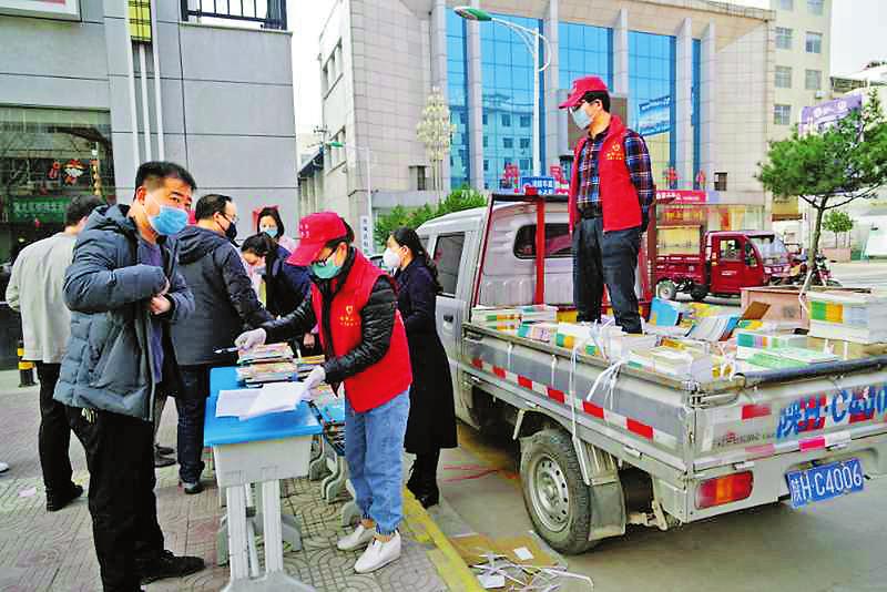 丹凤县各学校组织教师志愿者服务队,按照防疫授课两不误的原则开展“送书上门”服务活动。截至3月8日,全县90%的学生均拿到新教材,有效提高了“停课不停学”线上教学的效果。(郑志财 摄)