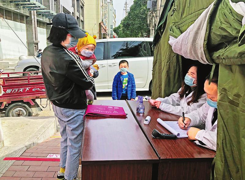 3月10日,记者在商州区名人街预防接种门诊看到,为给孩子进行预防接种,许多家长正在有序排队、登记。据现场医务人员介绍,自3月4日起市区恢复辖区所有预防接种服务后,周一至周六,上午8时至11时30分,下午14时至17时30分市民可进行电话预约。接种时间延长为周一至周六上午8时到12时,下午14时至18时。目前,他们每天接种人数在70多人左右。在此,医务人员提醒市民,在预约接种服务时,必须佩戴医用口罩,做好自身防护,在接种门诊内排队时与其他儿童及监护人保持适当距离,接种完成后到指定区域留观,严防人员聚集。(方方 摄)