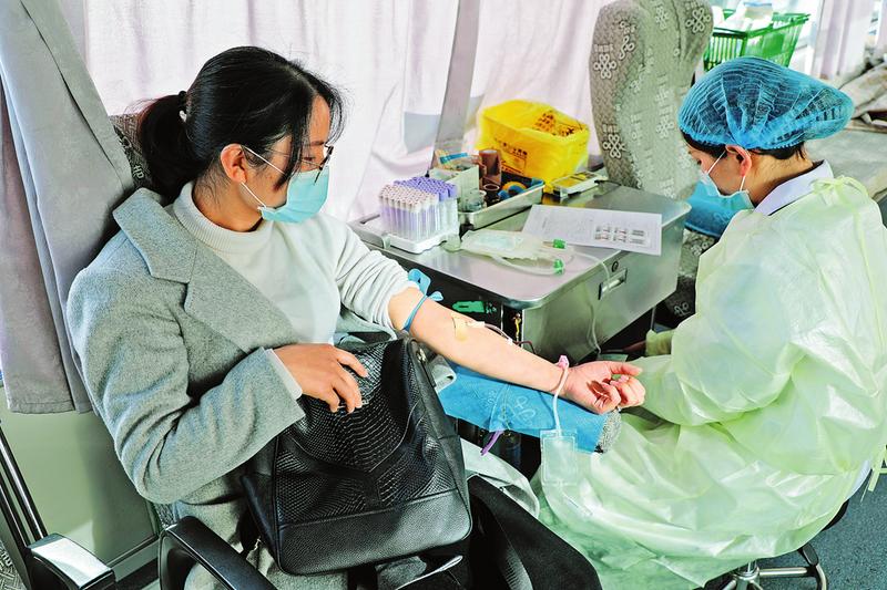 3月17日,商州区法院组织20名法官干警无偿献血5600毫升。(宋雨萌 摄)