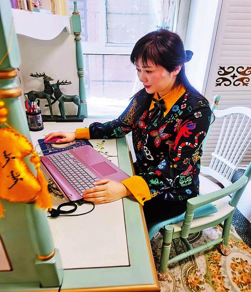 安梅正在给学生上网课