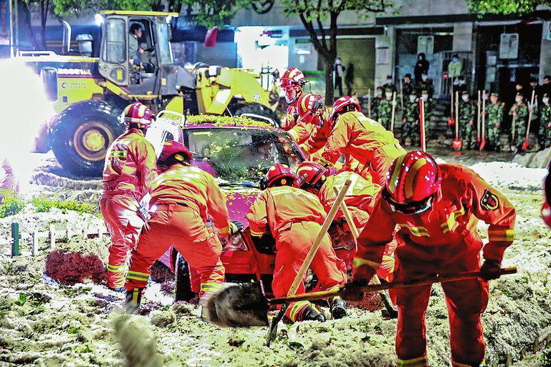 22时36分,全勤指挥部带领丹南路特勤消防站、丹凤城关消防站7车39人到达现场后,立即成立现场指挥部,详细了解和侦查现场。随后,指挥部将现场所有指战员分组作业,对遭受冰雹灾害严重片区进行搜救,同时针对小区门口的安全通道、身处低洼的居民住户、掩埋的车辆、堵塞的人行通道开展清理工作。