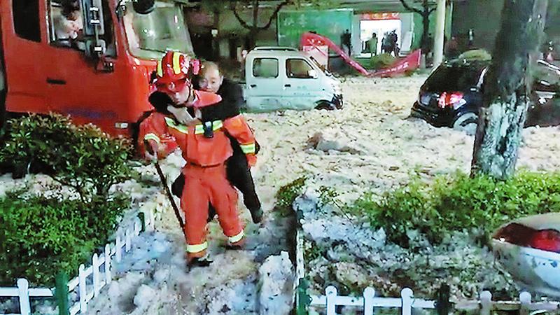 商洛市消防救援指挥中心接到群众报警,商南县城老烟草公司、朝阳路附近发生冰雹灾害,有大量群众被困。彼时,网民抖音里、朋友圈、群聊里,都是路被冰雹封堵、交通道路被封锁、群众被困的场景……