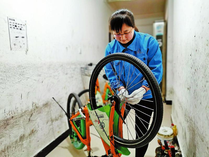李晓莉对记者说,当初得知自己要去修理自行车时,许多人都不看好她。“修车子的大都是男同志,你一个女人能修好吗?”类似的质疑不绝于耳。她进入岗位后,跟师傅认真学习,从一开始啥也不会到如今修理娴熟,都是这几年经验的累积和辛勤的付出。“我们这个修理小团队里,女同志还挺多,谁说我们女同志干不了维修?”她打趣道。